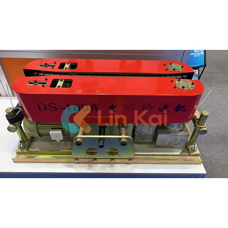 Машина за теглене на конвейерни кабели на Ningbo Lingkai Manufacture на склад, инструменти за електрически кабели серия DCS. Електрическият мотор на нашата машина за теглене на конвейерни кабели може да задвижва устройства за инсталиране на захранващи или телеком кабели. Фланговите гъсеници задвижват кабелите напред, което елиминира повредата на изолацията. Гъсениците на продуктите са в централно хоризонтално положение.